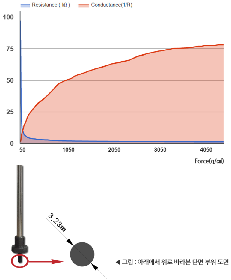 [▲ Output variation of FSR sensor by pressure level (Marveldex RA18 sensor)]